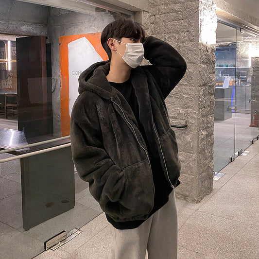 No. 3563 DARK GRAY WOOLEN FLEECE ZIP-UP HOODED JK