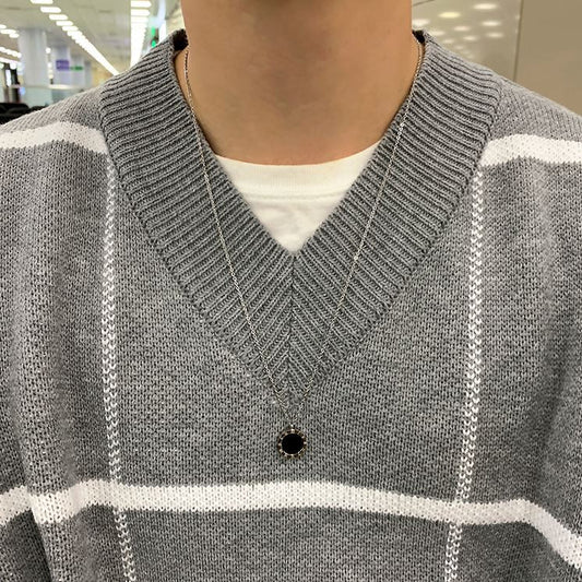 RT No. 1298 V-NECK PLAID SWEATER