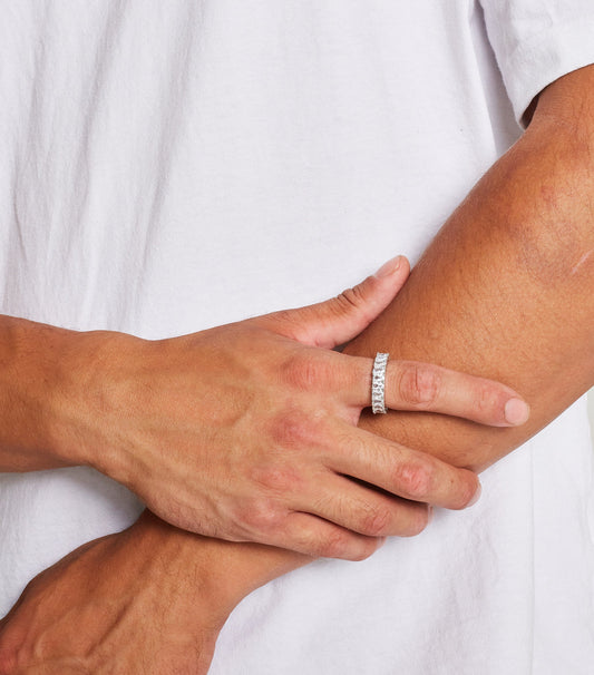 BAGUETTE PRONG CUBAN RING [WHITE GOLD]