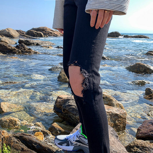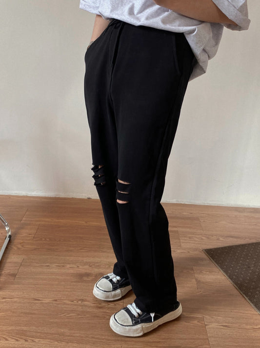 RT No. 1473 RIPPED KNEE BLACK JEANS