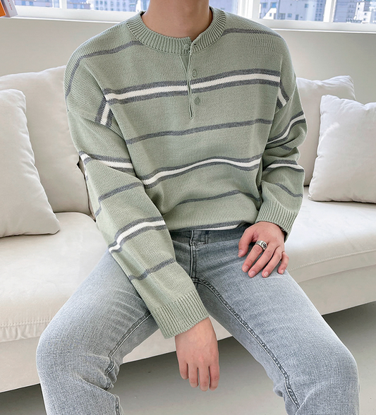 RT No. 3159 STRIPED KNITTED HALF-BUTTON UP SHIRT