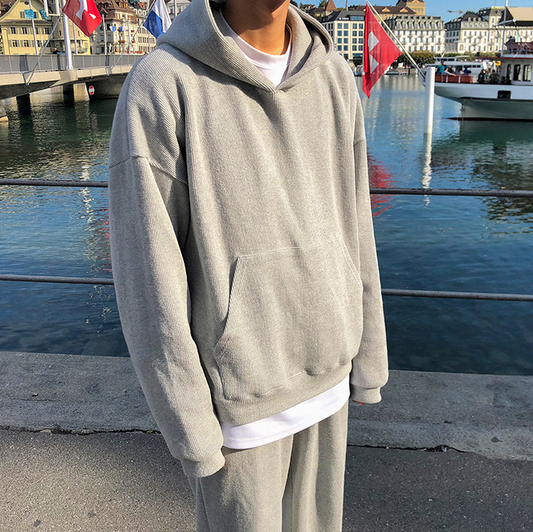 RT No. 3135 GRAY KNITTED HOODIE AND WIDE SWEATPANTS (TOP & BOTTOM)