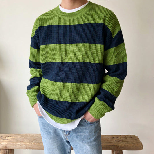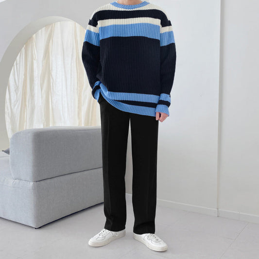RT No. 3332 BLUE KNITTED STRIPED SWEATER