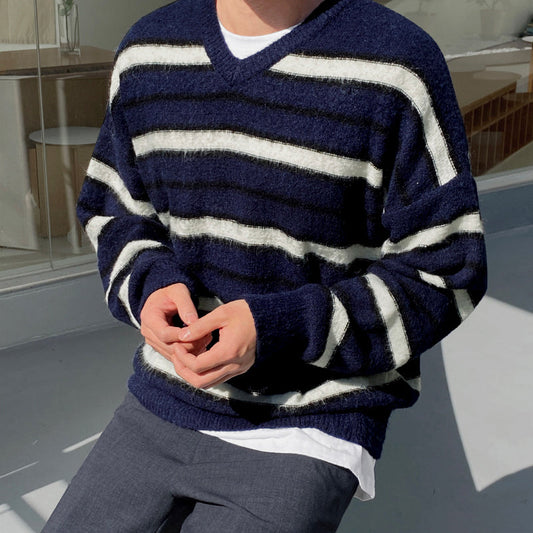 RT No. 3280 V-NECK STRIPED KNITTED SWEATER