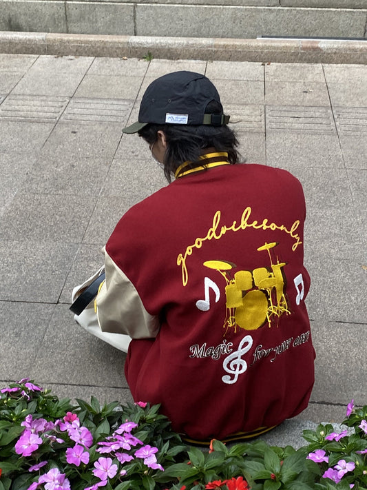 RT No. 3383 MUSIC EMBROIDERY LEATHER VARSITY JK