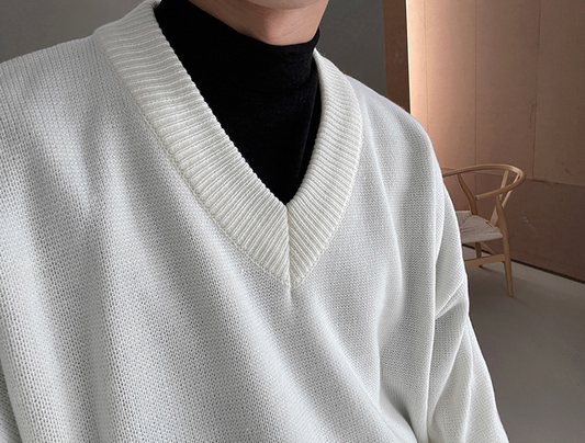 RT No. 3344 WHITE V-NECK KNITTED SWEATER
