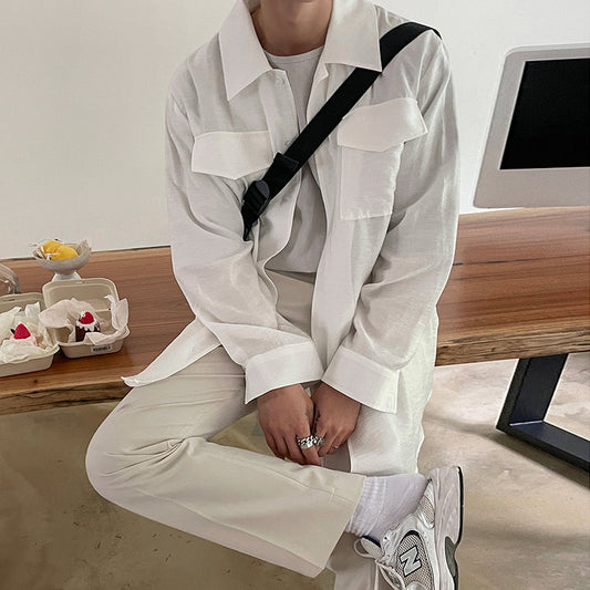 RT No. 4256 WHITE TWISTED KNITTED COLLAR SHIRT