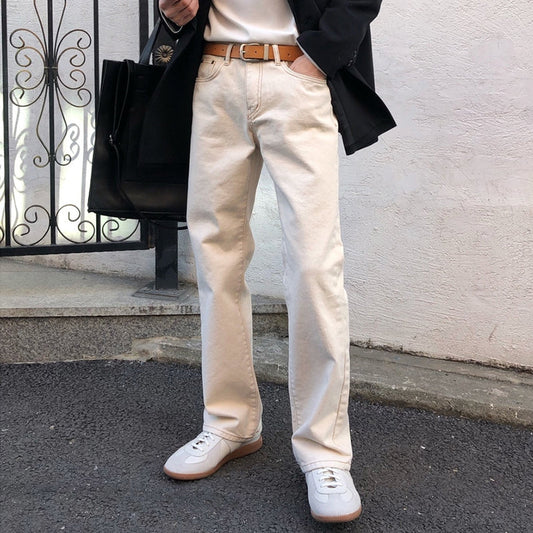 RT No. 4348 CREAM WIDE STRAIGHT JEANS