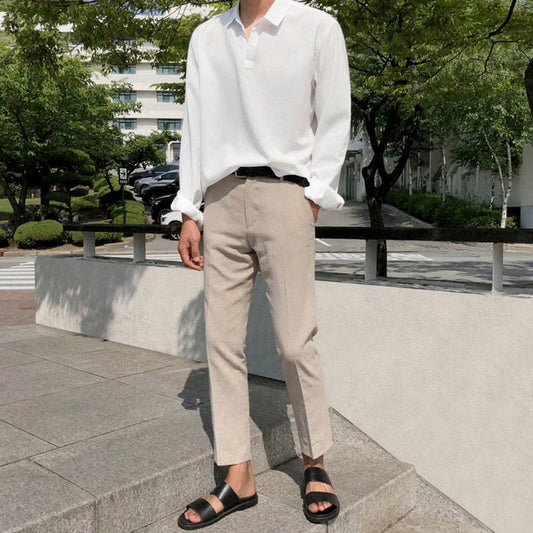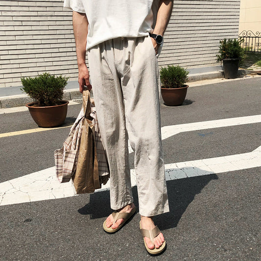 RT No. 4396 KHAKI LINEN STRAIGHT CASUAL PANTS