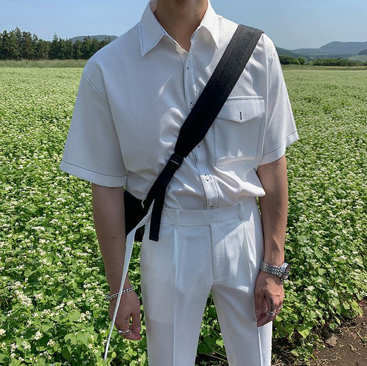 RT No. 4384 OUTLINE STITCHED SHORT SLEEVE COLLAR SHIRT