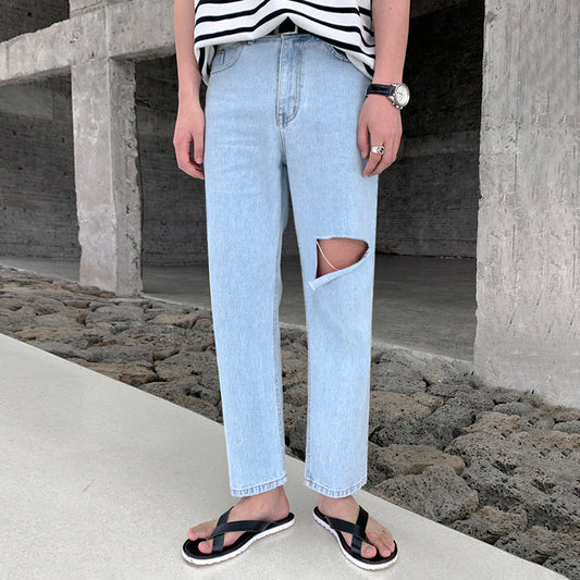 RT No. 4468 LIGHT BLUE RIPPED STRAIGHT JEANS