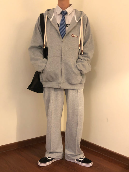 RT No. 5197 GRAY DOUBLE DRAWSTRING ZIP-UP HOODIE