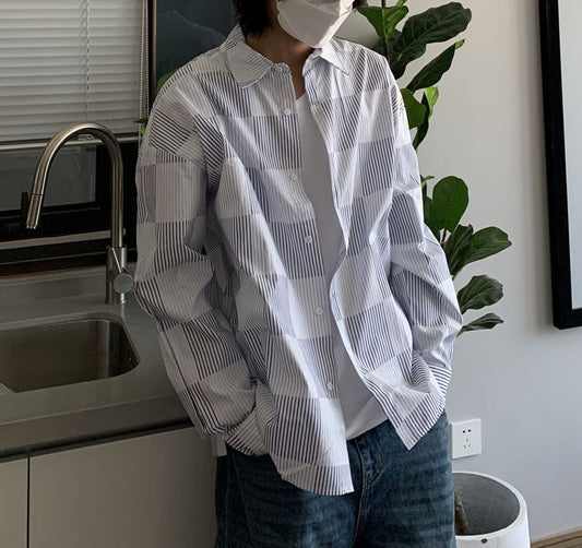 RT No. 5437 PLAID BOX STRIPED BUTTON-UP SHIRT