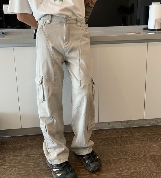 RT No. 5428 CARGO MULTI-POCKET CASUAL STRAIGHT WIDE PANTS