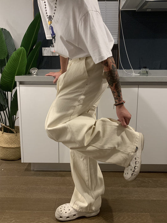 RT No. 5444 CREAM BAGGY LOOSE STRAIGHT WIDE JEANS