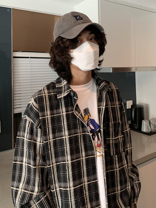 RT No. 5440 BLACK PLAID BUTTON-UP COLLAR SHIRT