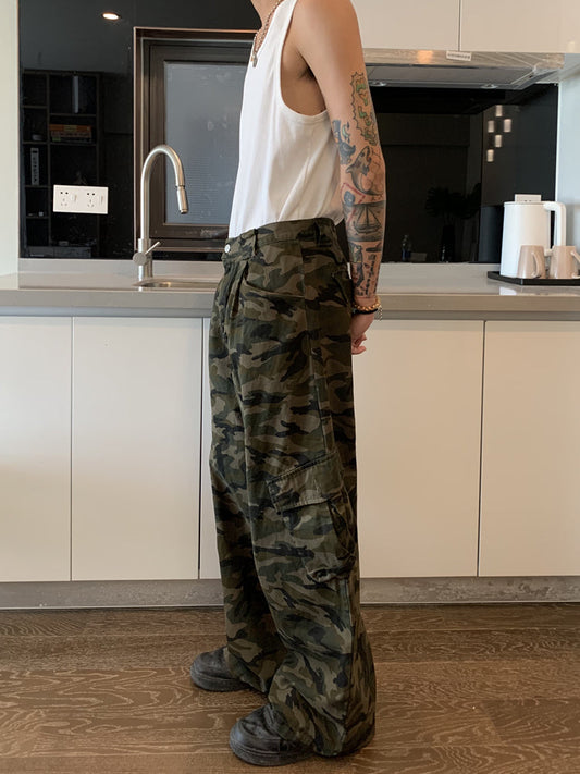 RT No. 5422 GREEN CAMO CASUAL STRAIGHT WIDE PANTS