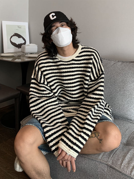 RT No. 5439 KNITTED WEAVE STRIPED SWEATER
