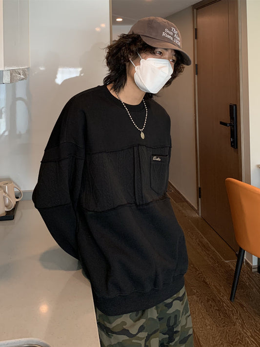 RT No. 5420 BLACK ROUND NECK LETTERED SWEATER