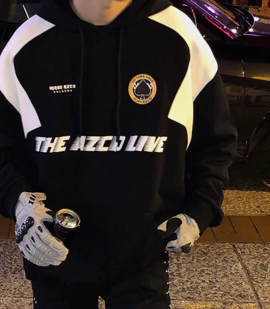 RT No. 5477 BLACK TWO-TONE LETTER HOODIE