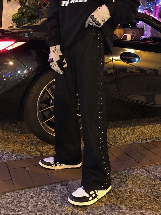 RT No. 5475 BLACK SIDE BUTTON STRAIGHT PANTS