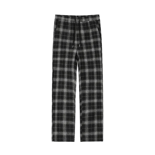RT No. 5513 BLACK PLAID WIDE STRAIGHT CASUAL PANTS
