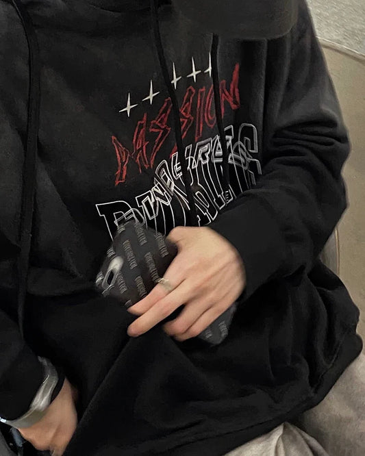 RT No. 5524 WASHED BLACK GRAPHIC LETTERED HOODIE