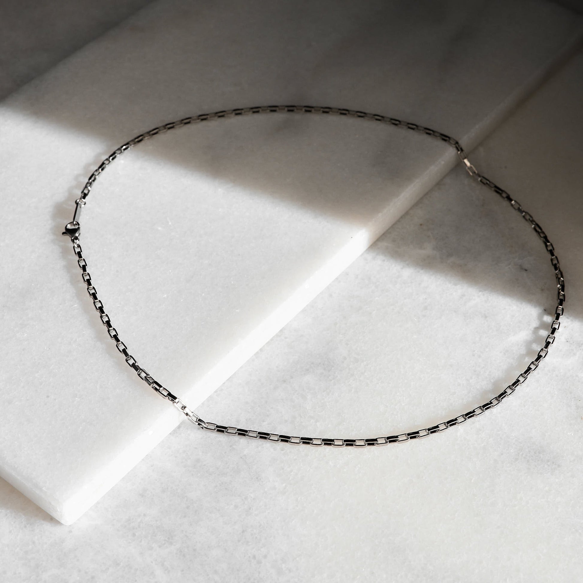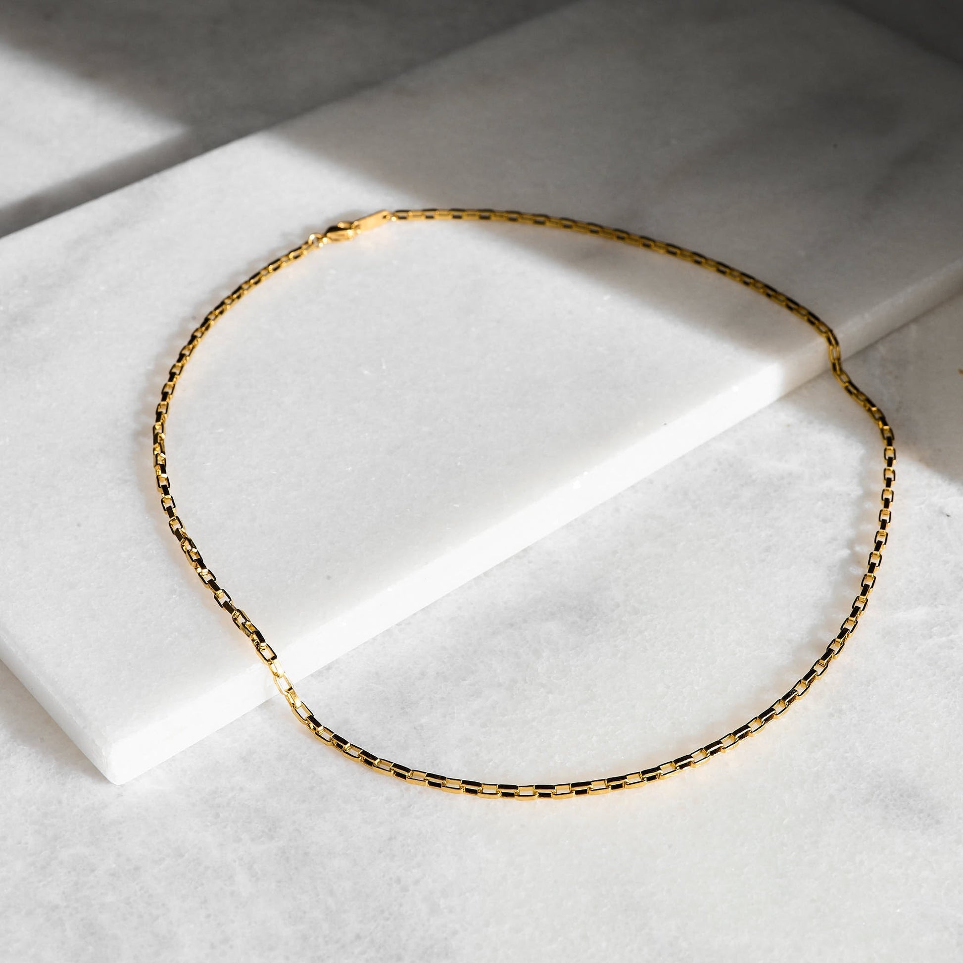Our Box Chain is like the name suggests: ‘Boxy’. The chain has boxed links instead of round, which makes it an absolute eye-catcher. The Box Chain is perfect for everyday wear.