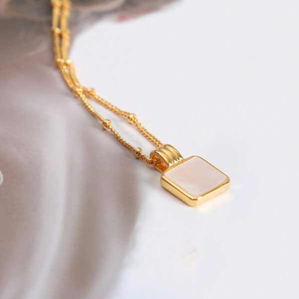 Trends may come and go, but simply chic pieces like the Mika Malachite / Shell Pendant Necklace never fall out of style! This dainty necklace has gold beaded chains and a single square charm.