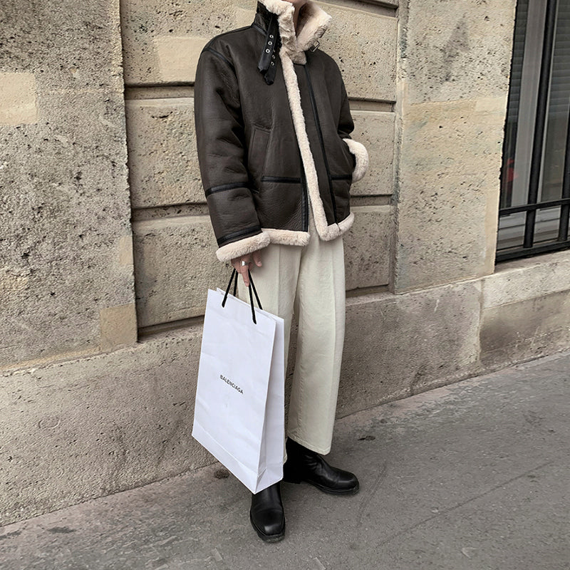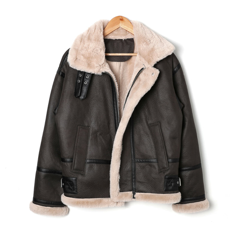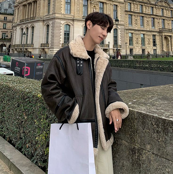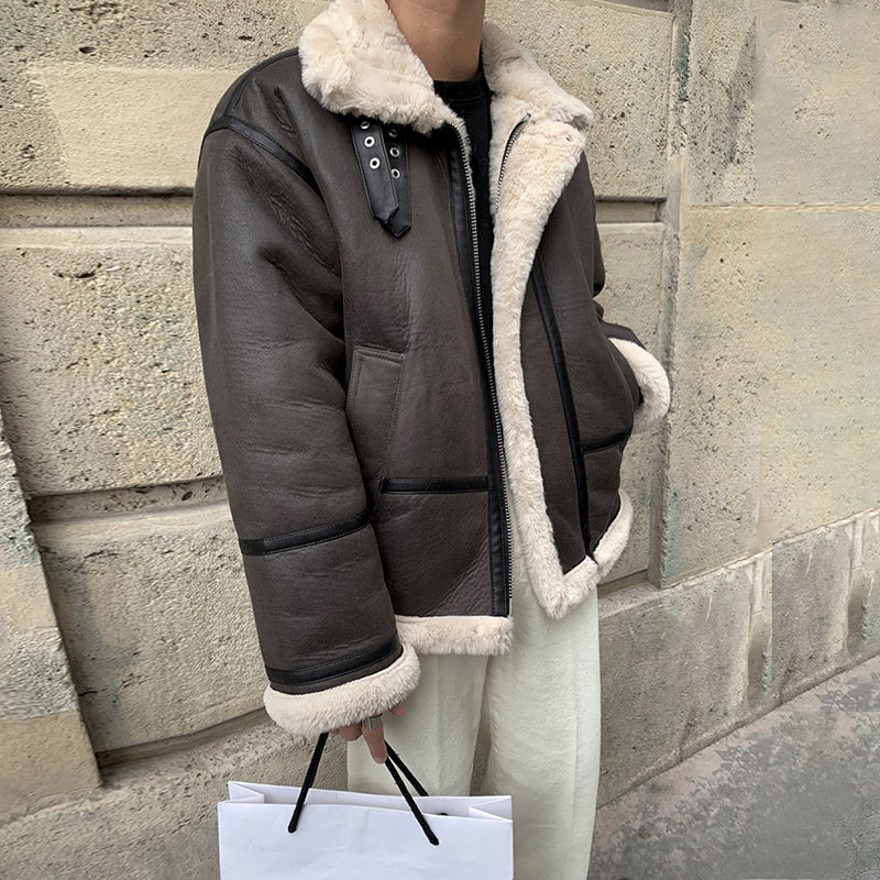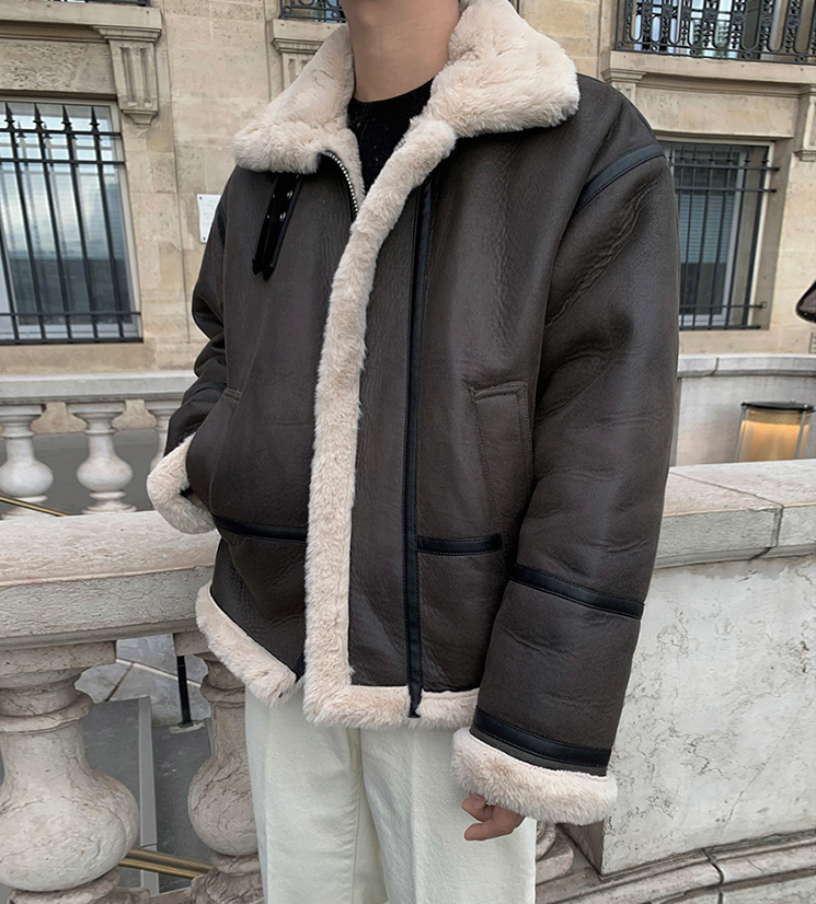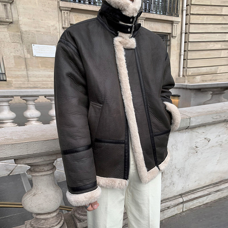 No. 3569 DARK BROWN FLEECE STAND COLLAR LEATHER JK