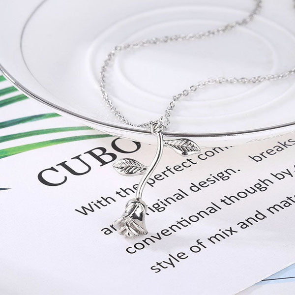 The super cute Rose pendant Necklace is available in three tone and features a thin chain and a rose pendant. Perfect addition to any outfit!