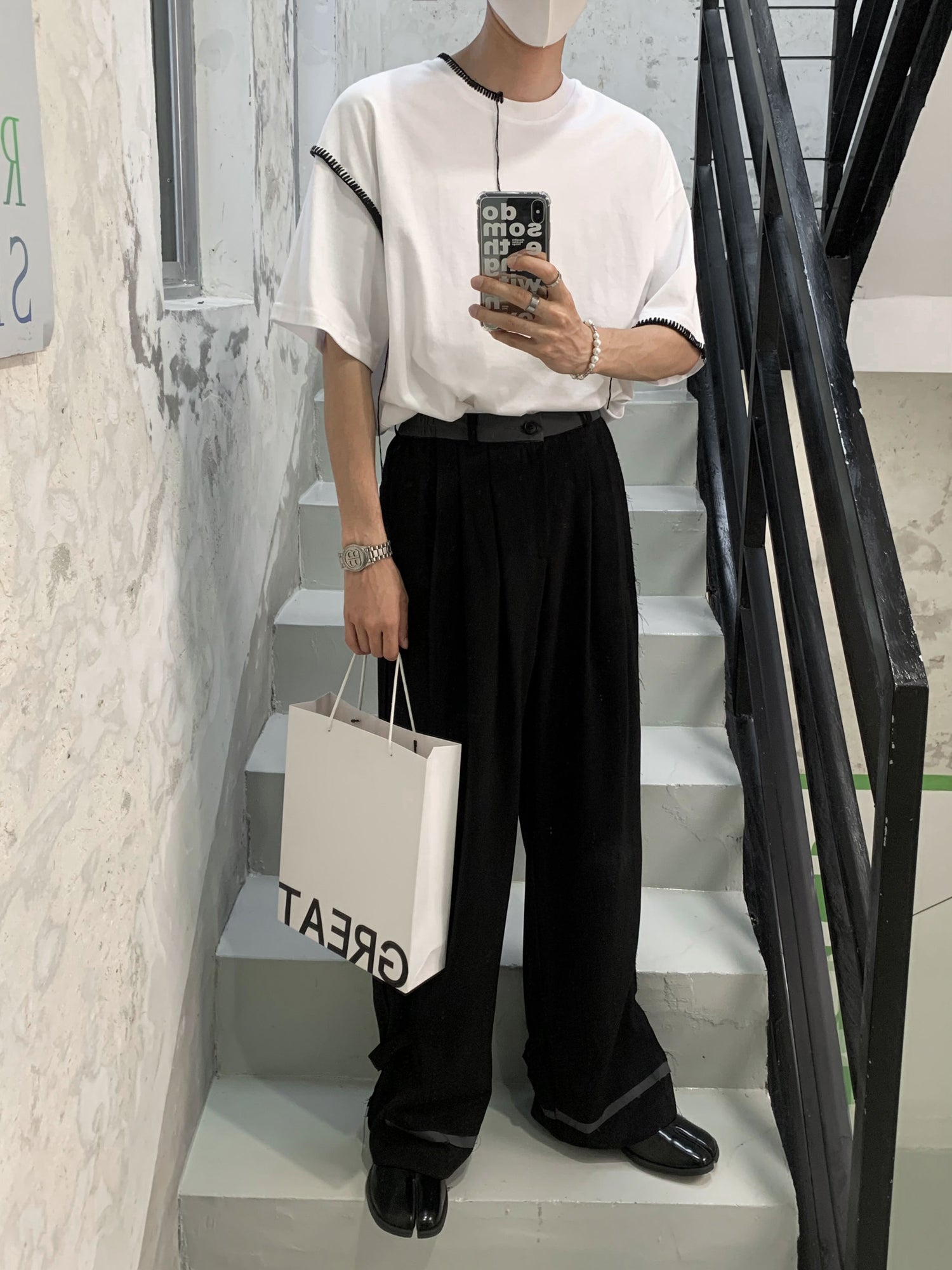 Model is 5ft 10" (178cm) tall, 121 lbs(55kg) weight and wearing a size M (oversize)