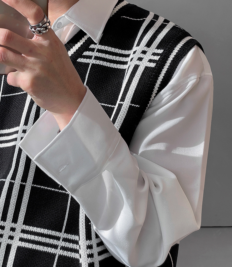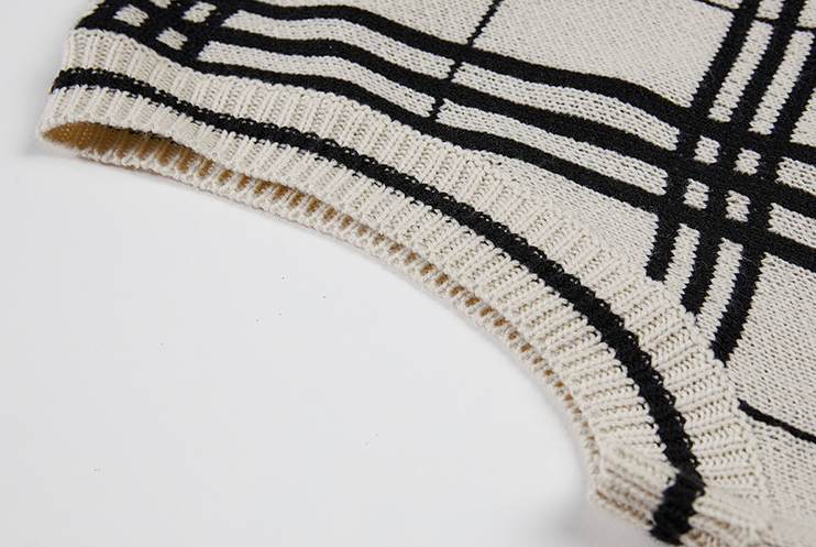 RT No. 3170 KNITTED PLAID V-NECK VEST
