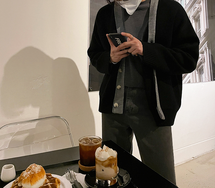 RT No. 3342 BLACK KNITTED CARDIGAN