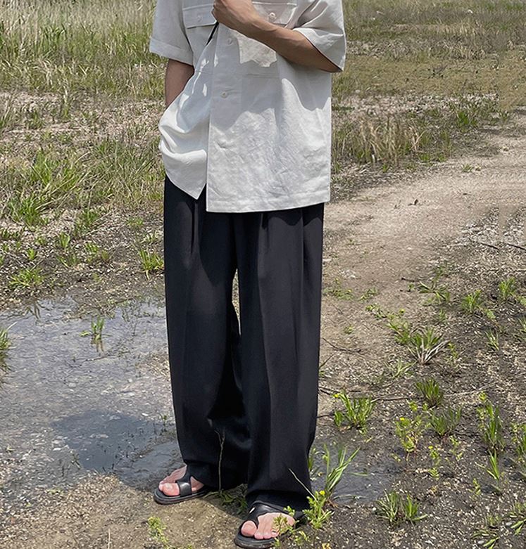 RT No. 4399 DRAPE BLACK GRAY WIDE PANTS