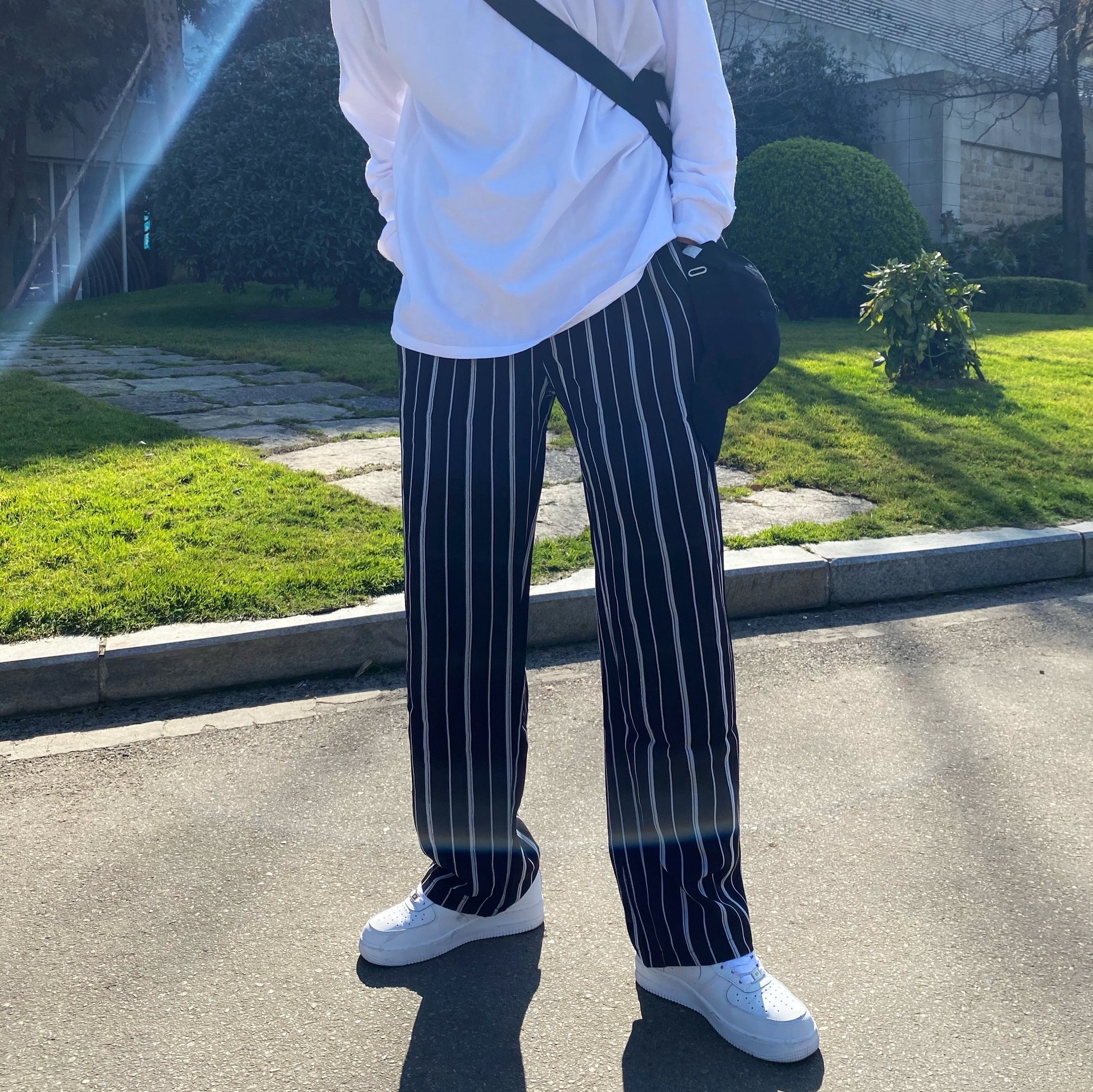 RT No. 4450 BLACK STRIPE WIDE STRAIGHT PANTS