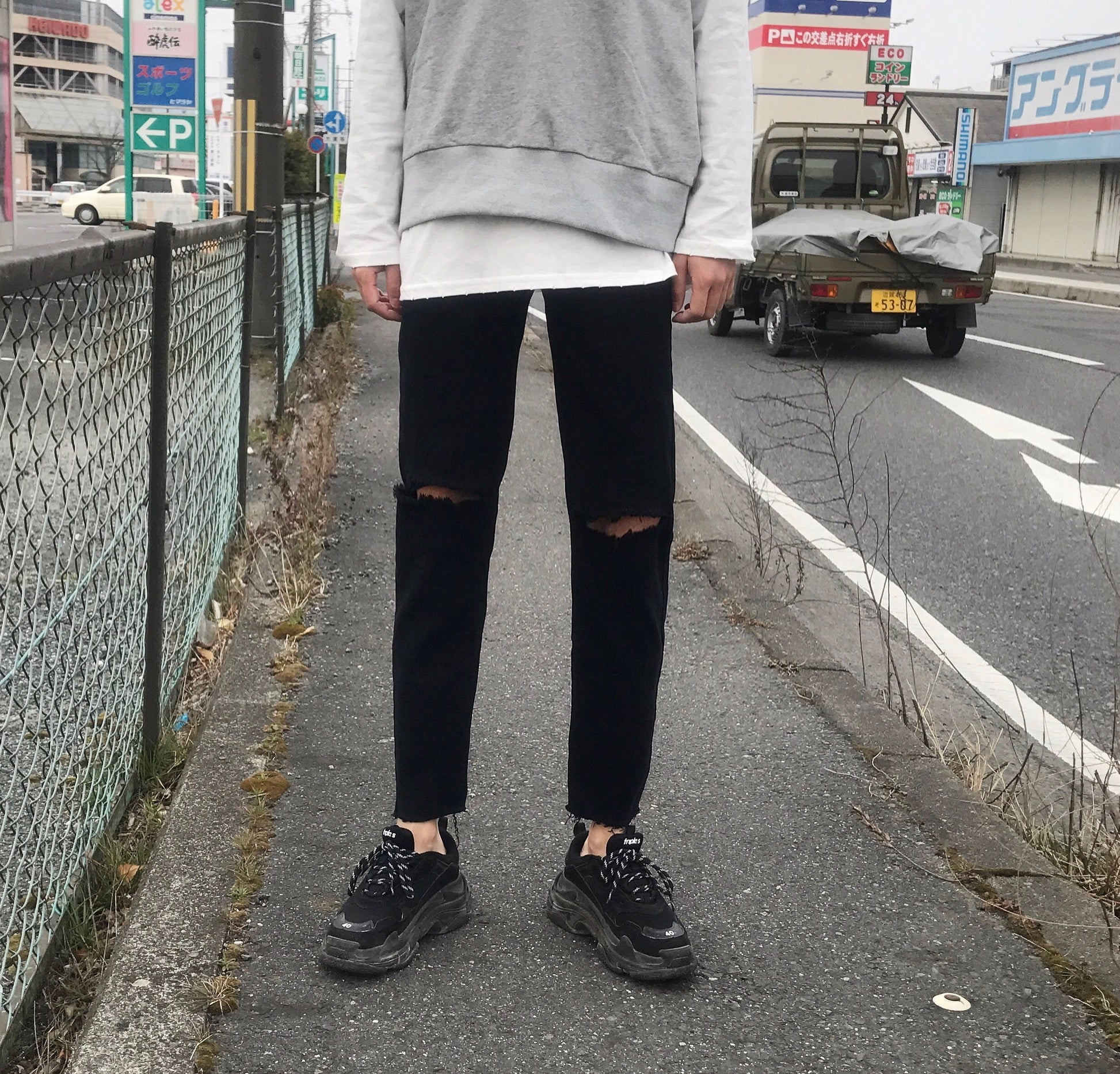 RT No. 4452 BLACK RIPPED SLIM DENIM JEANS