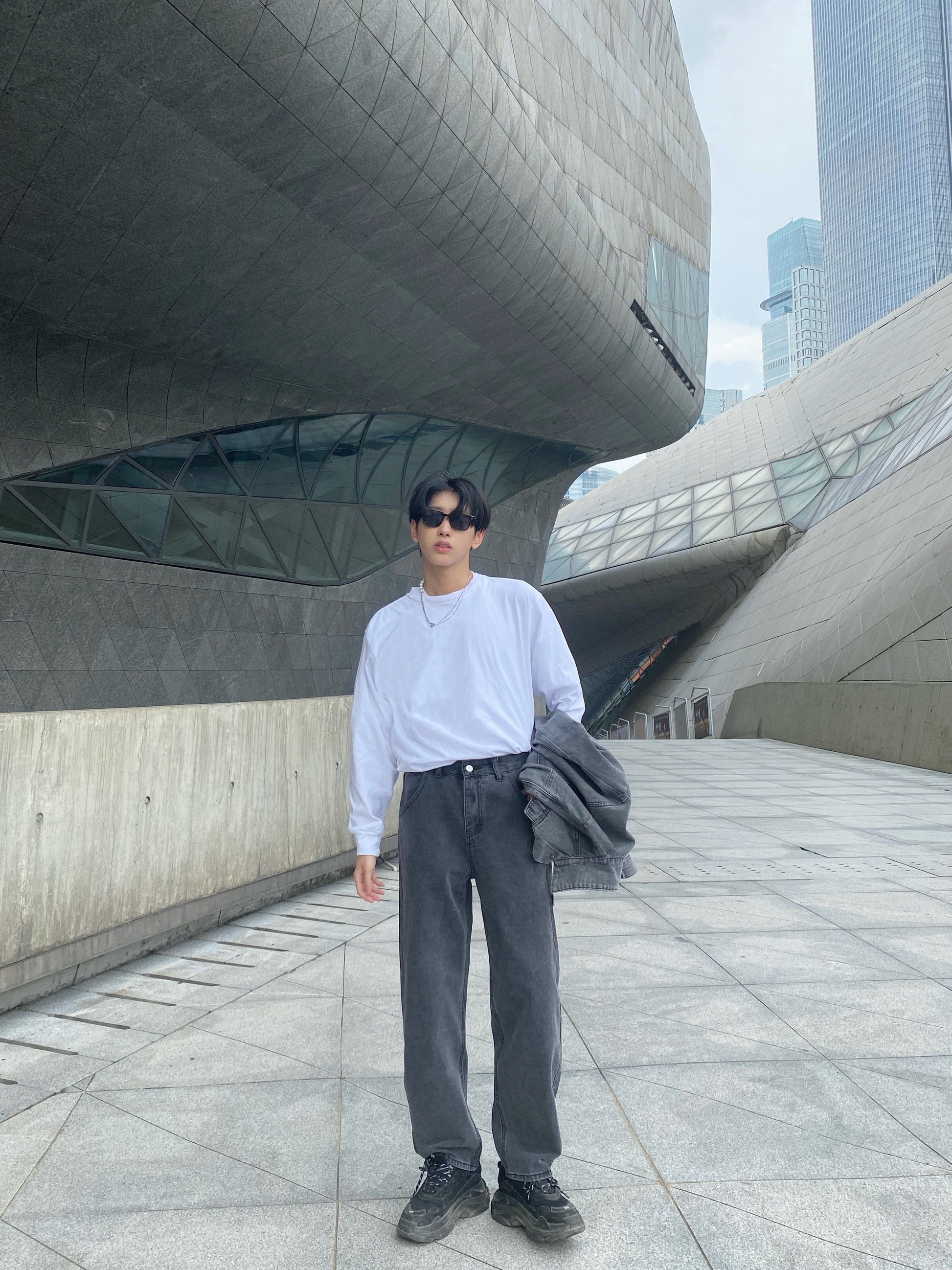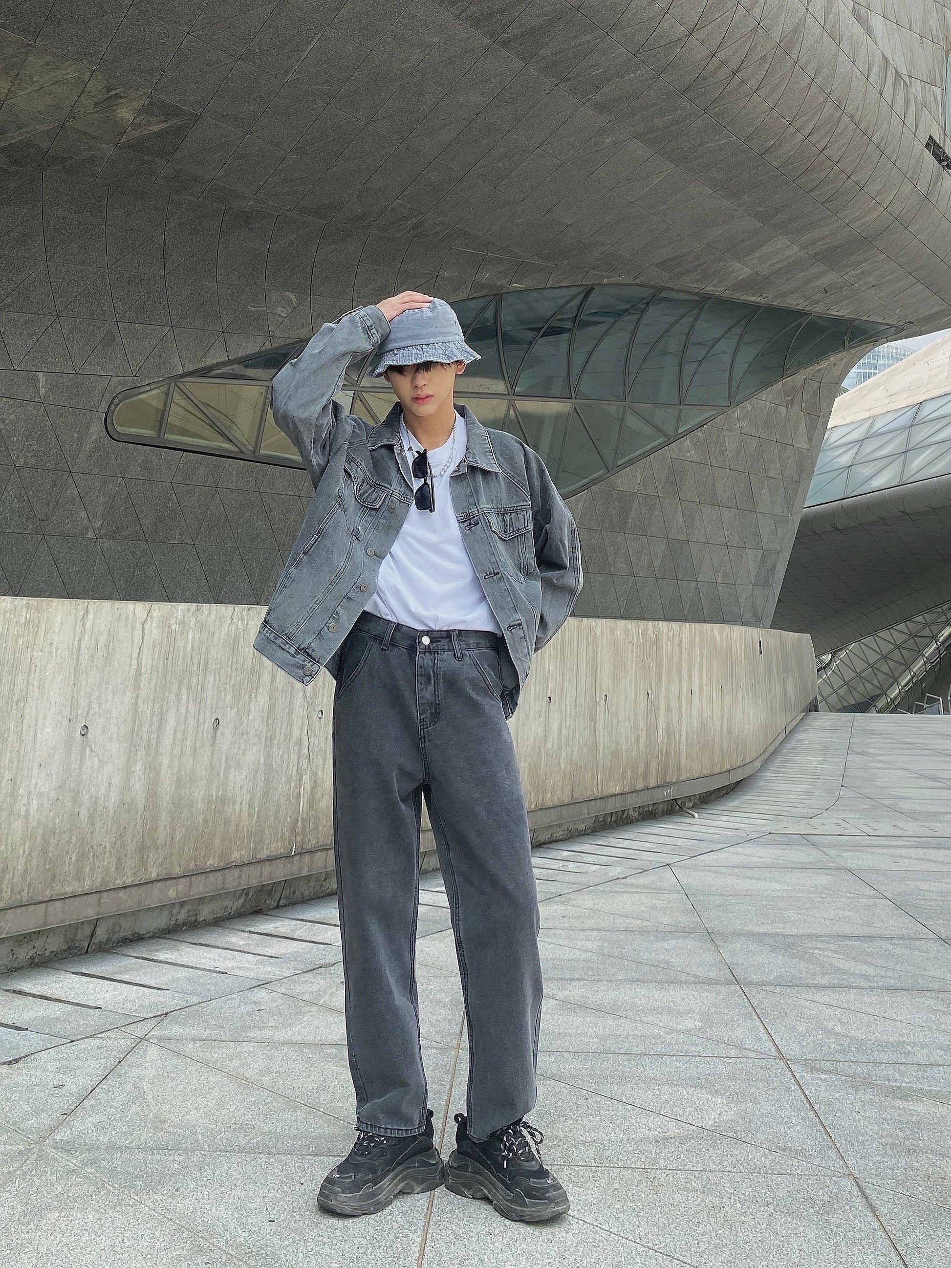 RT No. 4453 WASHED GRAY SLIM STRAIGHT JEANS