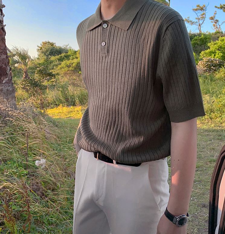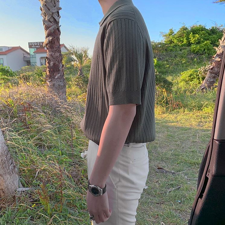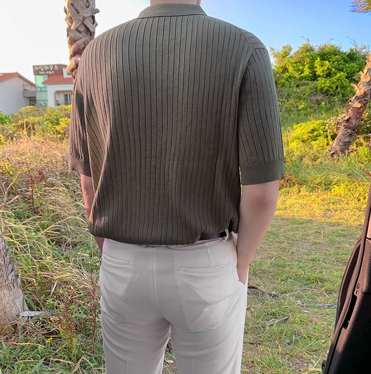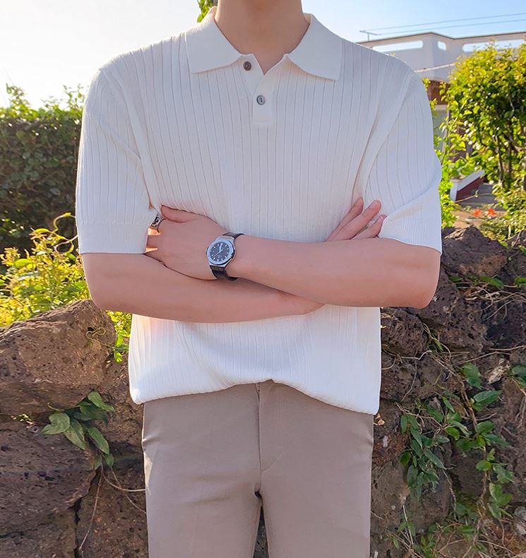 RT No. 4465 KNITTED COLLAR HALF BUTTON-UP SHORT SLEEVE