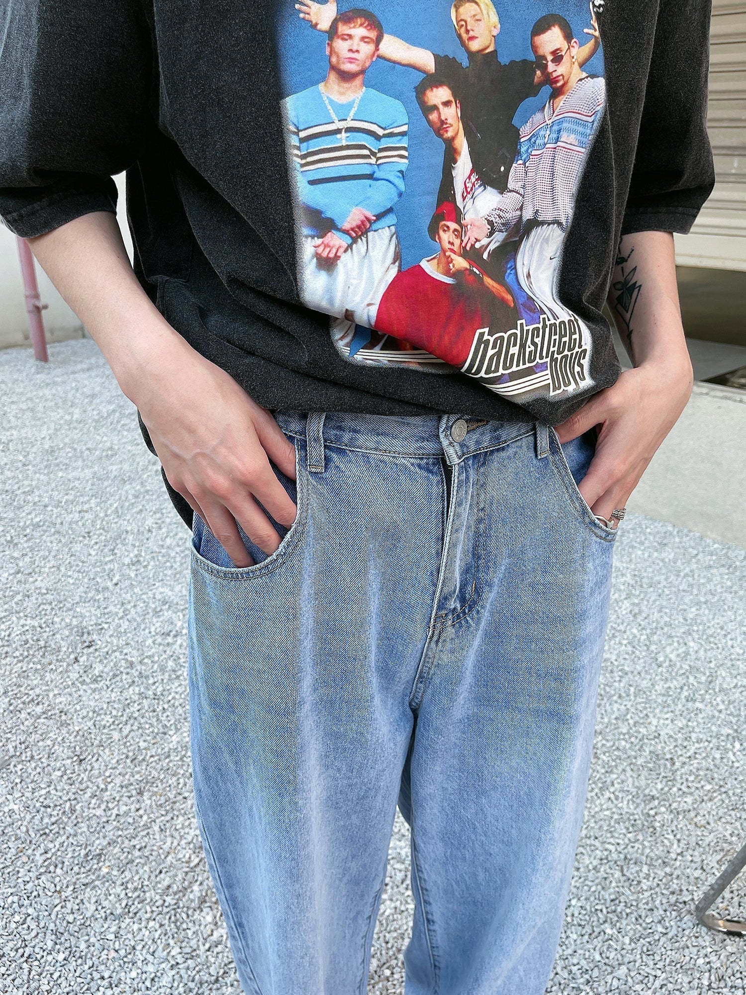 RT No. 4517 BLUE CASUAL WIDE STRAIGHT DENIM JEANS