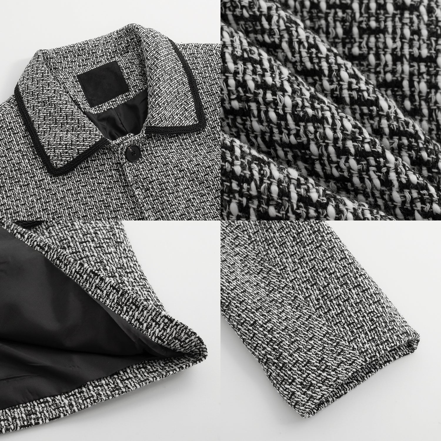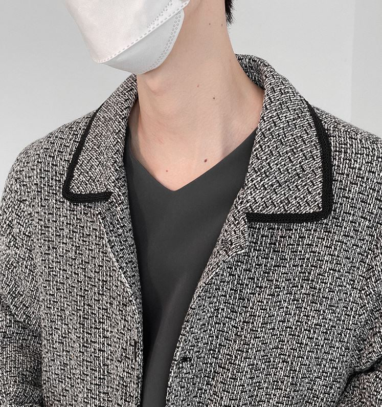 RT No. 5303 KNITTED TWEED GRID COLLAR BUTTON-UP JK