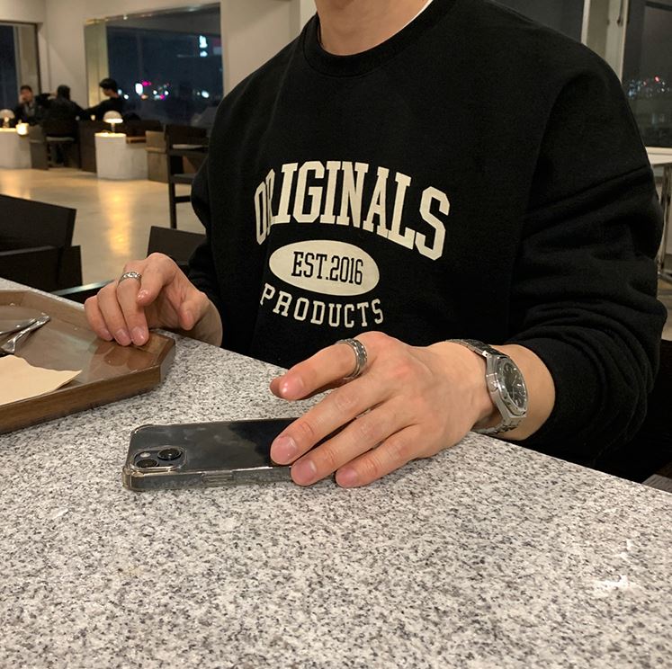 RT No. 5420 BLACK ROUND NECK LETTERED SWEATER