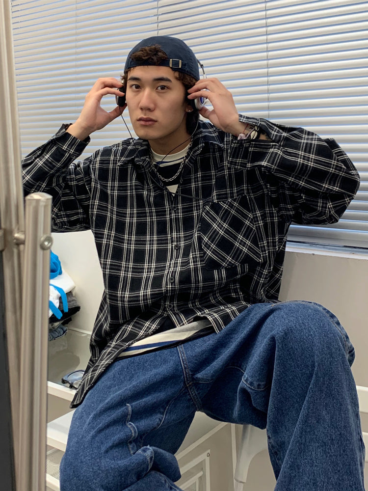 RT No. 5425 BLACK PLAID COLLAR SHIRT