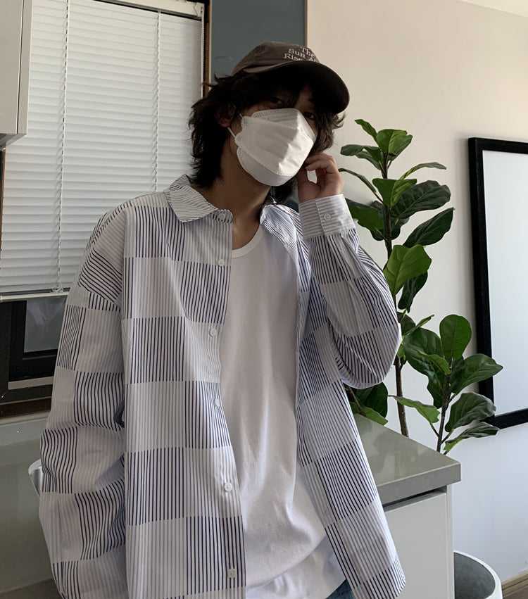 RT No. 5437 PLAID BOX STRIPED BUTTON-UP SHIRT