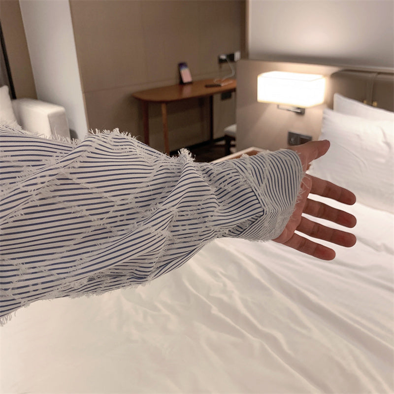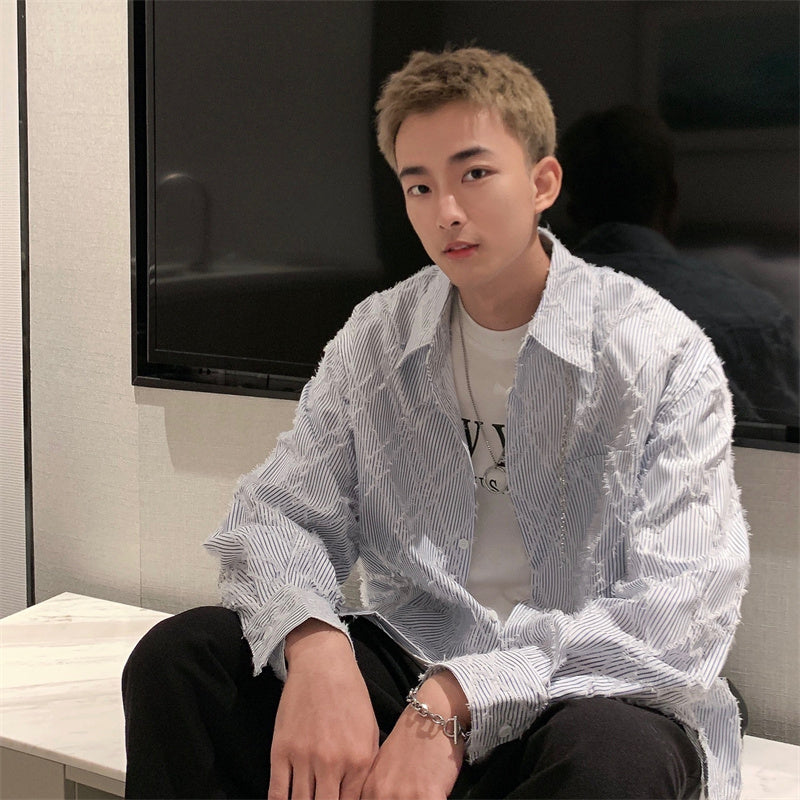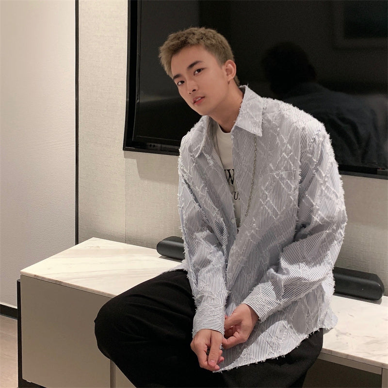 RT No. 5455 DISTRESSED DIAMOND STRIPED COLLAR SHIRT